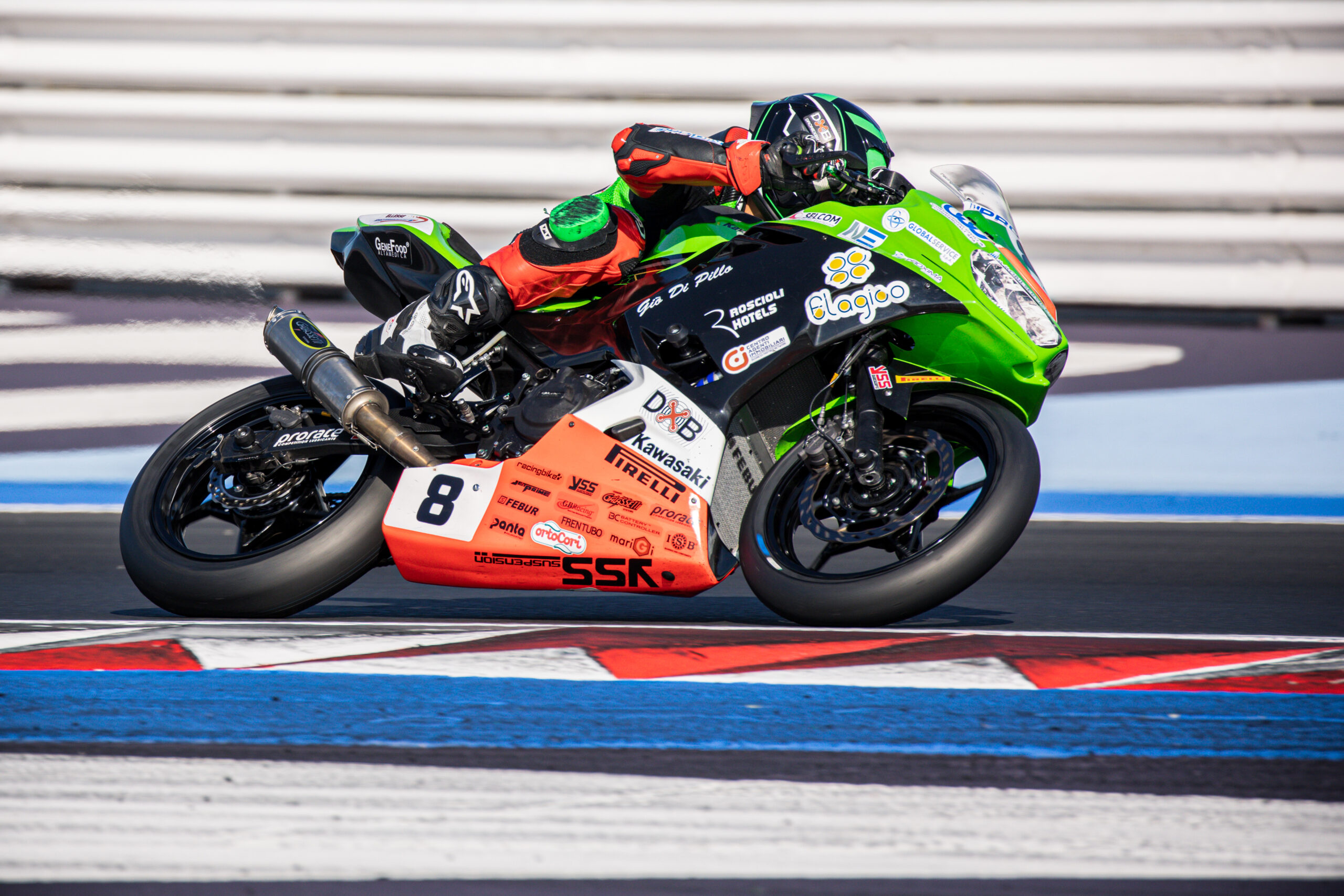 In riva all’adriatico, nel suggestivo tracciato di Misano Adriatico, si è concluso oggi il primo giorno di gare del quarto round CIV Supersport300. La compagine romana si è presentata al via di questo appuntamento con il talentuoso pilota abruzzese Bruno Ieraci. Bruno ha dimostrato una grande competitività durante le sessioni di prove libere e nelle due sessioni di qualifiche, guidando la Ninja preparata dal Prodina Racing Team. Ieraci ha confermato di essere un pilota molto veloce ottenendo la pole position con un tempo di 1’49.561.