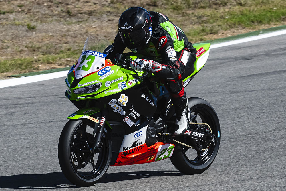 Nel saliscendi portoghese dell’ Autodromo Internacional do Algarve, in Portogallo, si è svolta la Superpole seguita dalla prima gara del Portuguese Round WorldSSP300. Il team Prodina Racing ha portato in pista, l’italiano Mattia Martella e il francese Samuel Di Sora. In una mattinata caratterizzata da sole e caldo, la Superpole ha definito la griglia di partenza per le gare del weekend. Di Sora si è classificato al decimo posto con un tempo di 1’55.754, mentre Martella, alla sua prima apparizione su tale circuito, ha ottenuto la ventinovesima posizione con un crono di 1’57.470.