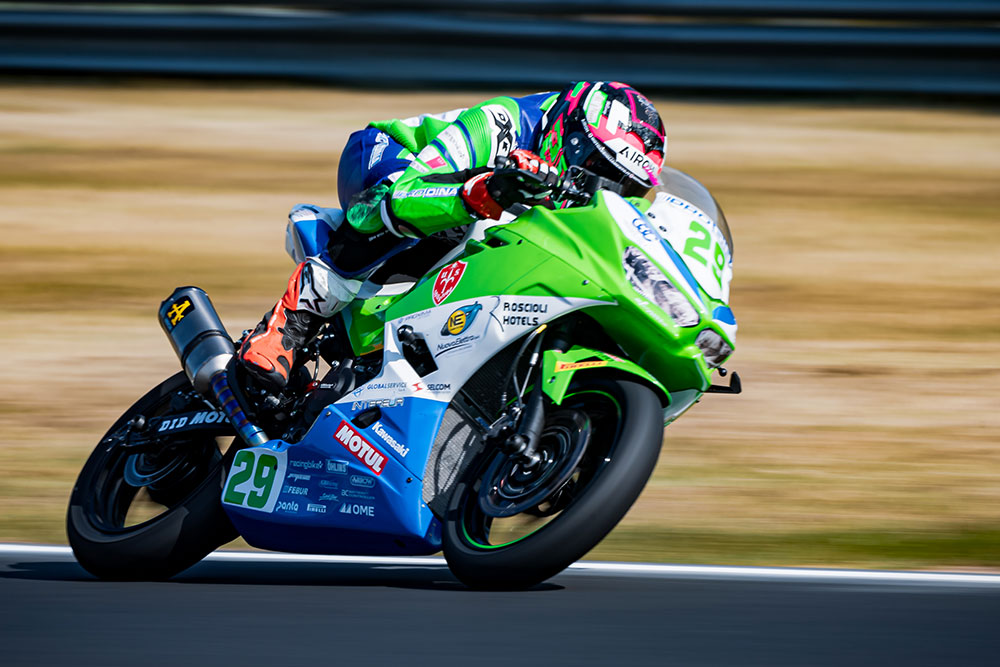 Si è conclusa oggi sul tracciato di Most la seconda e ultima gara del weekend del CzechWorldSBK Round WorldSSP 300, che ha visto protagonisti i piloti Bruno Ieraci e Giacomo Zannini. Nella giornata di ieri, Ieraci ha dimostrato grande determinazione e spirito di combattimento, riuscendo a compiere una bella rimonta. La prova di Zannini è stata invece più difficile, con il pilota che ha faticato a trovare il giusto ritmo in gara. La seconda gara del weekend, disputata in un soleggiato e caldo pomeriggio domenicale, si è svolta su una distanza di 12 giri. Grazie a una partenza brillante dall’ottava fila e a una costante determinazione, Ieraci ha recuperato numerose posizioni. Bruno ha lottato con il coltello tra i denti nel gruppo di testa fino alla bandiera a scacchi, dove ha sfiorato il podio per pochi millesimi, concludendo in quarta posizione dopo una spettacolare rimonta. Anche il giovane rookie Giacomo Zannini ha offerto una buona prestazione. Partito dalla decima fila, ha mostrato da subito un buon passo. Purtroppo, un piccolo inconveniente gli ha fatto perdere tempo e il contatto con il gruppo, ma con determinazione ha concluso diciannovesimo. Nella classifica generale, Bruno Ieraci occupa attualmente l’undicesimo posto con 49 punti. Il prossimo appuntamento del Campionato Mondiale Supersport 300 è in programma dal 9 all’11 agosto sul circuito di Portimão, in Portogallo.